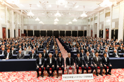 ![]() 隔月で開催される営業会議には、全事業所、関連会社の責任者が勢揃い。