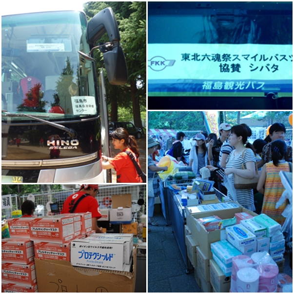 ②災害支援協賛当社も被災した2011年の東日本大震災。復興を願って開催された「東北六魂祭」には、微力ながら被災地住民送迎用バス運行協賛およびフリーマーケット用マスクを提供させていただきました。