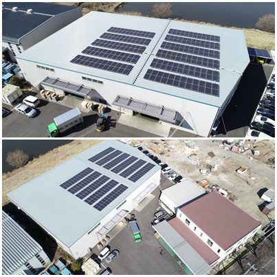 日本国内で1,200か所以上の屋根上太陽光発電設備の設置実績を有する第二電力㈱様の協力の下、幸手工場物流センター倉庫屋根部に太陽光パネルを設置し、クリーンエネルギーの発電活動に貢献しています。