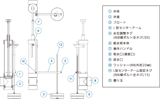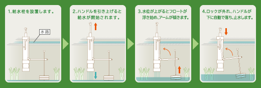 ◎半自動給水栓の取付及び操作は取扱説明書に従って正しく行ってください。◎冬季などの農閑期には、給水栓を水口から取り外してください。