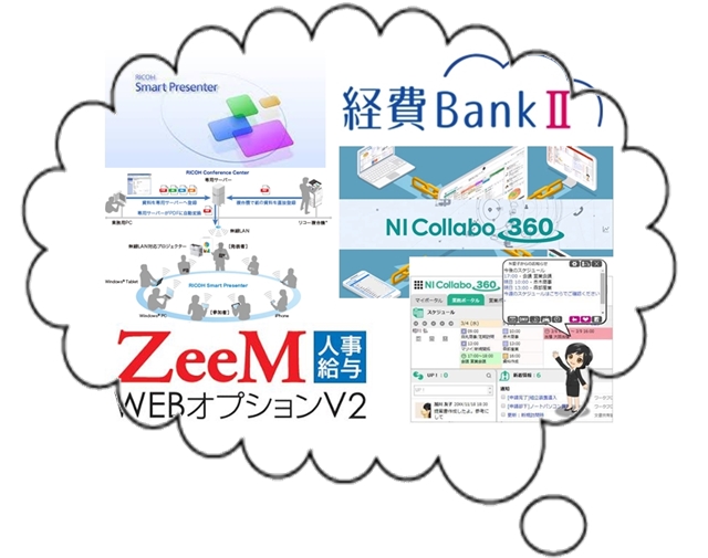 またデジタル会議システムを導入し、毎月の会議資料もペーパーレス化。郵送費も削減。 【導入システム例】