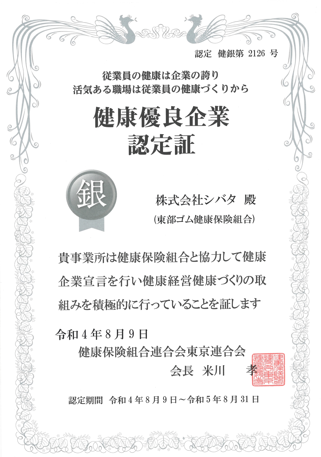 「健康優良企業 -《銀》」に認定されました 2022年8月9日 健康推進チーム 当社はこれまで個性と能力を活かせる職場環境と社員の健康への取組を推進してまいりましたが、経済産業省が推進する「健康経営優良法人2022」(大規模法人部門)に続き、健康保険組合連合会東京連合会より「健康優良企業」の【銀の認定】を授与されましたのでご報告申し上げます。