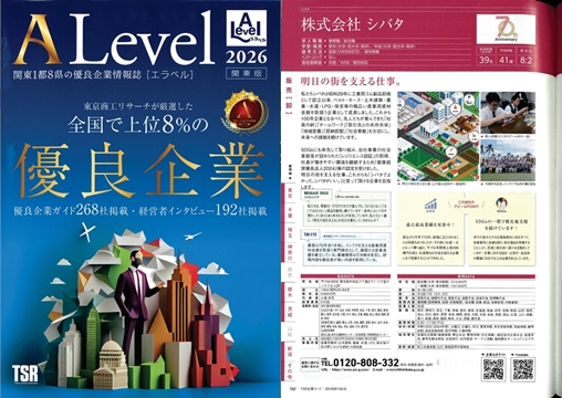 東京商工リサーチが認定する優良企業「ALevel(エラベル)」に掲載されました。 全国458万社の企業データの中から、上位8%の優良企業に与えられる「Aランク企業」に認定され、「エラベル 関東版2026年」に掲載されました。