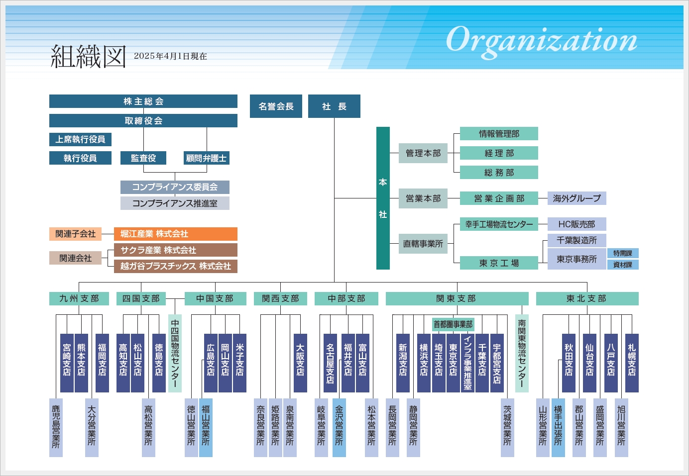 首都圏事業部にはインフラ事業推進室を新設、東京支店・埼玉支店を管轄下に設置します。また南関東物流センターを開設し、いずれも令和7年4月1日より業務を行うこととなりました。