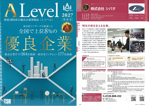 東京商工リサーチが認定する優良企業「ALevel(エラベル)」に掲載されました。 全国企業データの中から、上位8%の優良企業に与えられる「Aランク企業」に認定され、「エラベル 関東版2027年」に昨年に続き掲載されました。