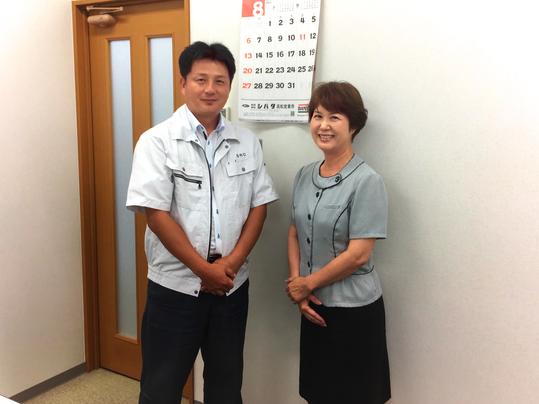 | 素晴らしい会社と仲間に恵まれて、日々仕事ができることに感謝しております。高松営業所は所長をはじめ、所員が同じ方向を見て日々がんばっています。小橋美雪さんは私が入社当時からお世話になってきた大先輩。沢山教えていただいたし教育していただきました。厳しかったですよ~(笑) |