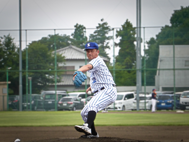 土日や休日は趣味であるゴルフや野球をしています。会社のチームにも再発足当時から選抜されて参加させていただいてます。小3から大学まで野球をやっていましたが、今では40歳以上のスポーツマスターズの全国大会を目指しています。 (写真:2017年東部工業用ゴム卸商組合野球大会1回戦で先発したときのもの) |